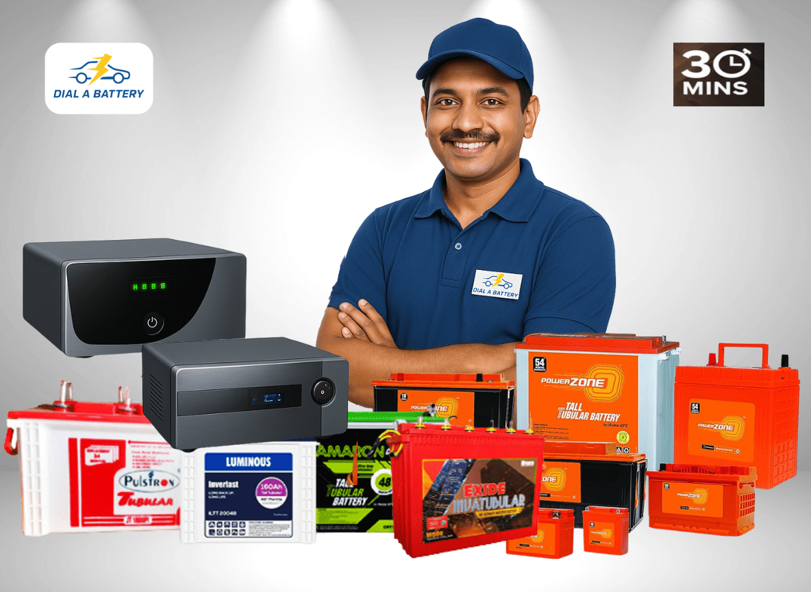 Dial A Battery is Hyderabad’s trusted destination for all your car, bike, and home inverter battery needs. We provide inspection and replacement services for top brands like Amaron, Exide, Powerzone, and Luminous – offering multi-brand options, doorstep assistance, and service within 30 minutes to make battery replacement fast, reliable, and hassle-free.
